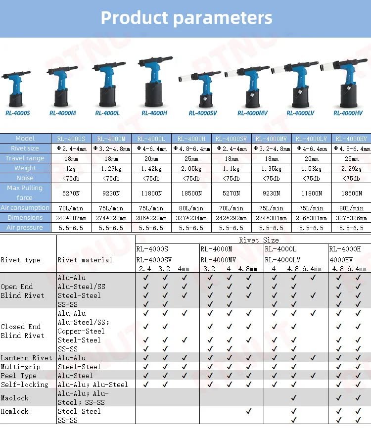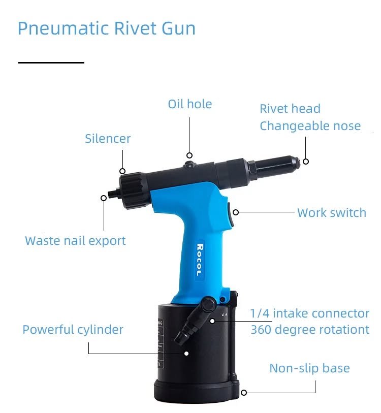Remachadora neumática industrial de aire para trabajo pesado, automática, autoaspirante, de acero inoxidable de 2,4-6,4 mm, 3/16